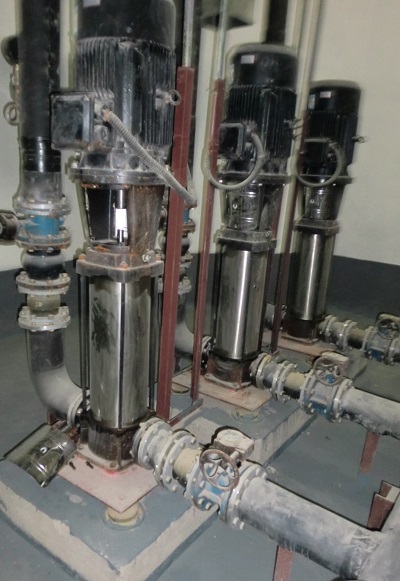 2、振动噪声。振动是该泵房产生的噪声的主要原因。泵的振动级在↑80.4dB →82.8dB;由于地基在安装时没有经过专业的减振处理,振动通过地基、楼房、上下水管道、供暖管线等声桥固体传导到各居室。既产生振动又由振动激发产生二次噪声,双重扰民。