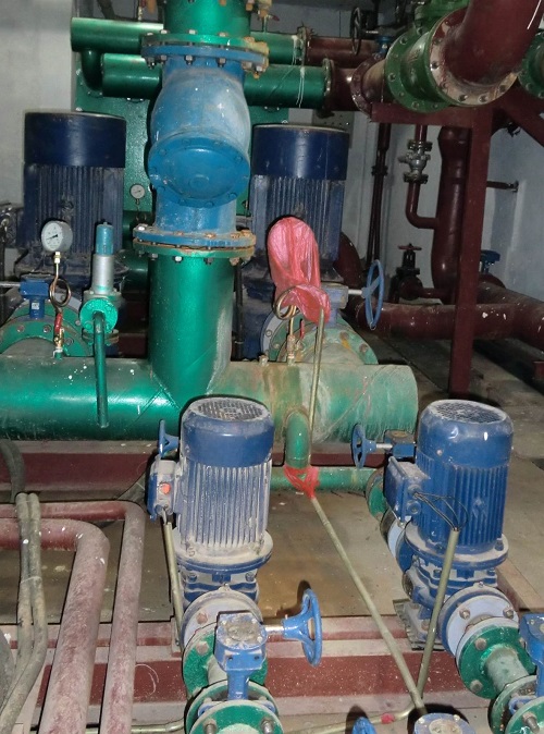 沈阳新城子小区执行沈阳市城市环境噪声一类地区标准。产生噪声的污染源主要是小区24号楼地下室水泵房内2台55kw供暖循环水泵和2台功率4kw补水泵,工作时产生的噪声和机械工作时由于振动产生的噪声。噪声污染源的指标数超出环保验收标准,甲方要求进行治理,达到环保验收标准。