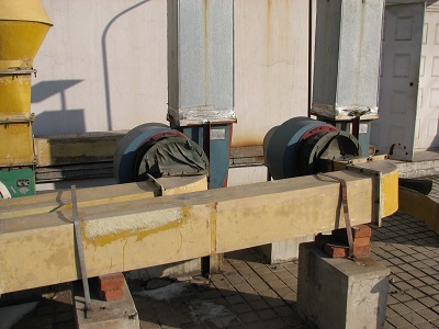二台通风机主要技术参数:型号为:4-72-NO.4A,流量7419m3∕h,全压2014Pa,转数2900r/min,功率5.5KW;测得出风口噪声值93dB(A),。