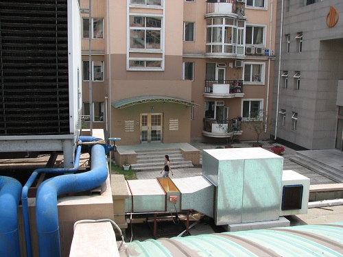 3、考虑风机振动对噪声和楼体的影响,对安装在会馆楼顶、距离居民楼最近的风机的底座安装减振装置;