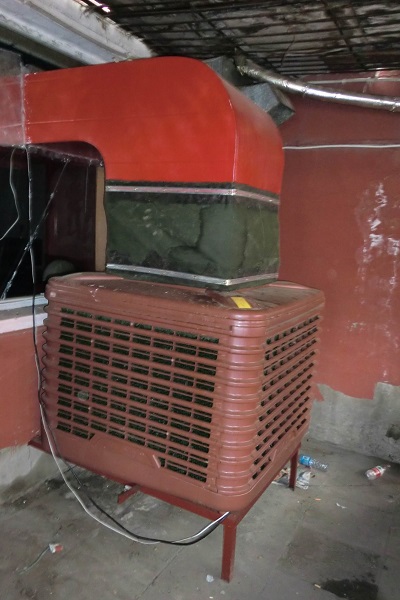 2、对于冷气机的振动产生的噪声处理。在冷气机原有的基础上根据每台机器的振动频响特性,设计相应的弹性体—质量—阻尼减振系统。弹性体就是缓冲,降低固有频率;质量提供足够的惯性力平衡其扰力;阻尼则避开共振区,三者协调达到理想的隔振效果,进行减振处理。